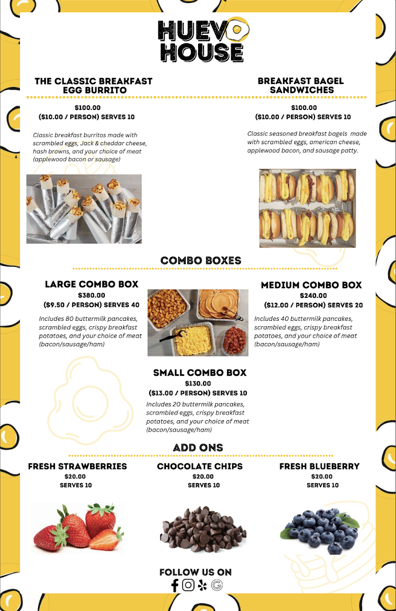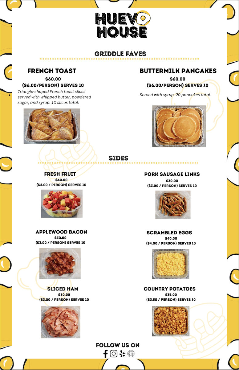 Appetizers like Guac & Chips are perfect for sharing, while patrons rave about the Biscoff pancakes, a fluffy twist on tradition. With friendly service and a lively atmosphere, Huevo House is more than just a meal; it’s an experience. As echoed by satisfied diners, you'll leave not only with a full belly but also with a smile. Every dish reflects a passion for flavor and community, making Huevo House a true gem for brunch enthusiasts.